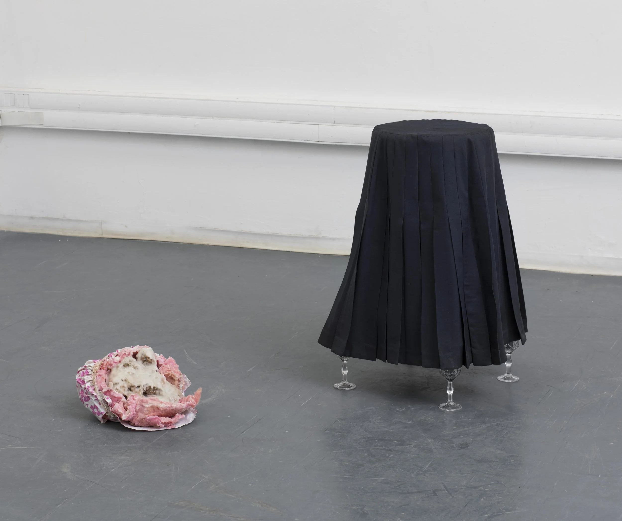 “Minnie Mouse Xs”, girls' underwear stretched on a concrete block, wax,